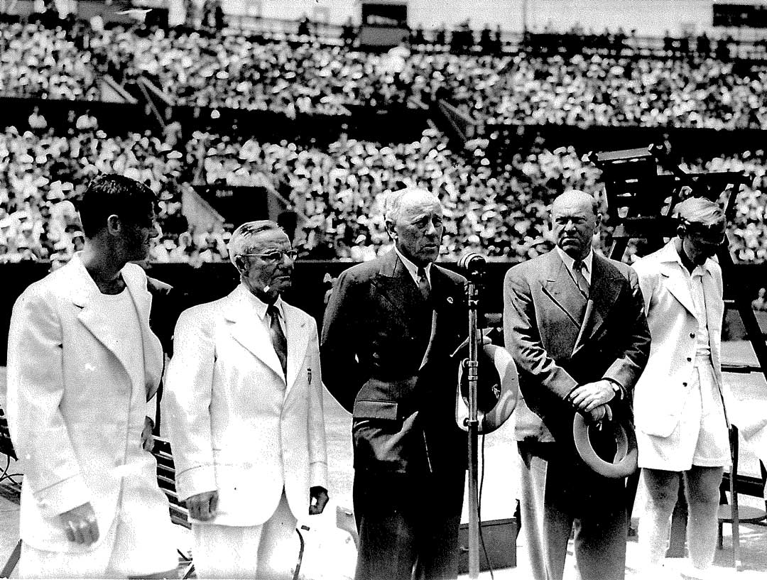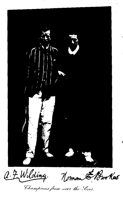 Brookes and Wilding at Wimbledon and-Brookes plays the winning stroke to defeat Wilding in the final