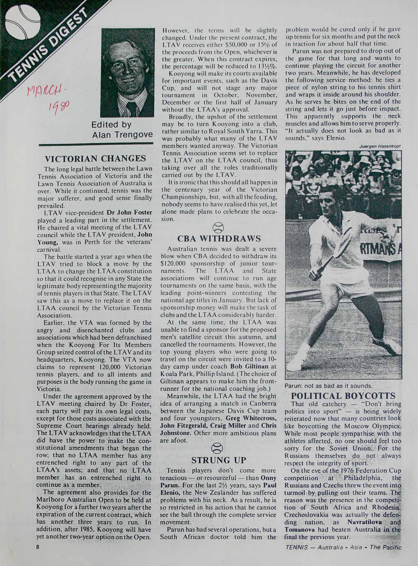 Foundation of the Lawn Tennis Association of Victoria (LTAV) to take over from the MCC the administration of tennis in Victoria, especially the Pennant Tennis Competition. No courts or membership facilities. MCC still ran major tournaments e.g. Australian/Victorian Championships in 1905.